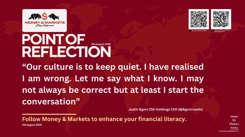 “Our culture is to keep quiet. I have realised I am wrong. Let me say what I know. I may not always be correct but at least I start the conversation.” – Justin Bgoni ZSE Holdings CEO (@BgoniJustin) Money & Markets is a Capital Markets Advocacy & Research Boutique helping investors to invest wisely & safely […]